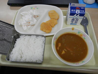 2日ぶりのアップです。山元町給食週間も今日が最終日。今日はカレーの日です。カレーにチキンナゲット。そしてフルーツヨーグルト和え!!!お父さんお母さん,おじいさん,おばあさんにとっても王道の組み合わせですね。