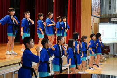 地元の講師を招いて,地域に伝わる民謡や踊りを学び,学習発表会で披露します。例年,踊りの保存会の方にも参加をいただき,一緒に発表しています。