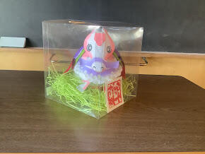 冬休み明け集会後、校長先生から各クラスに金魚ねぷたの「午」バージョンが!